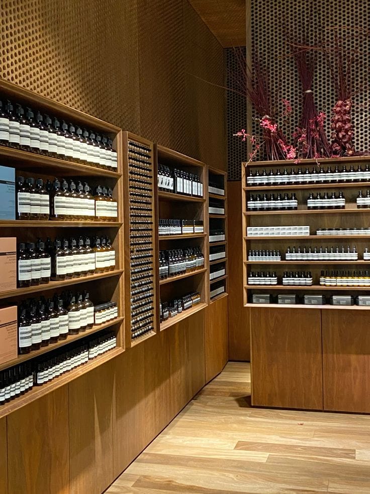 Một trong những chất liệu phổ biến nhất là gỗ công nghiệp. Loại gỗ này có ưu điểm là giá thành hợp lý, dễ gia công và có nhiều màu sắc đa dạng. Gỗ công nghiệp thường được phủ Melamine hoặc Laminate để tăng độ bền và chống trầy xước. Đây là lựa chọn phù hợp cho các cửa hàng mỹ phẩm, shop thời trang hoặc cửa hàng phụ kiện.