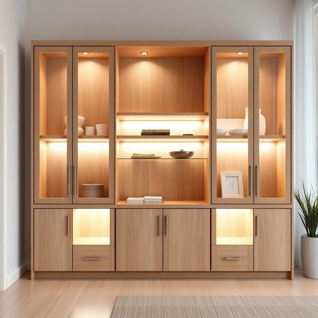 | Tủ đứng cao cấp | Dạng chữ nhật, nhiều tầng | MDF + kính + LED | 2.800.000 – 3.800.000 |
