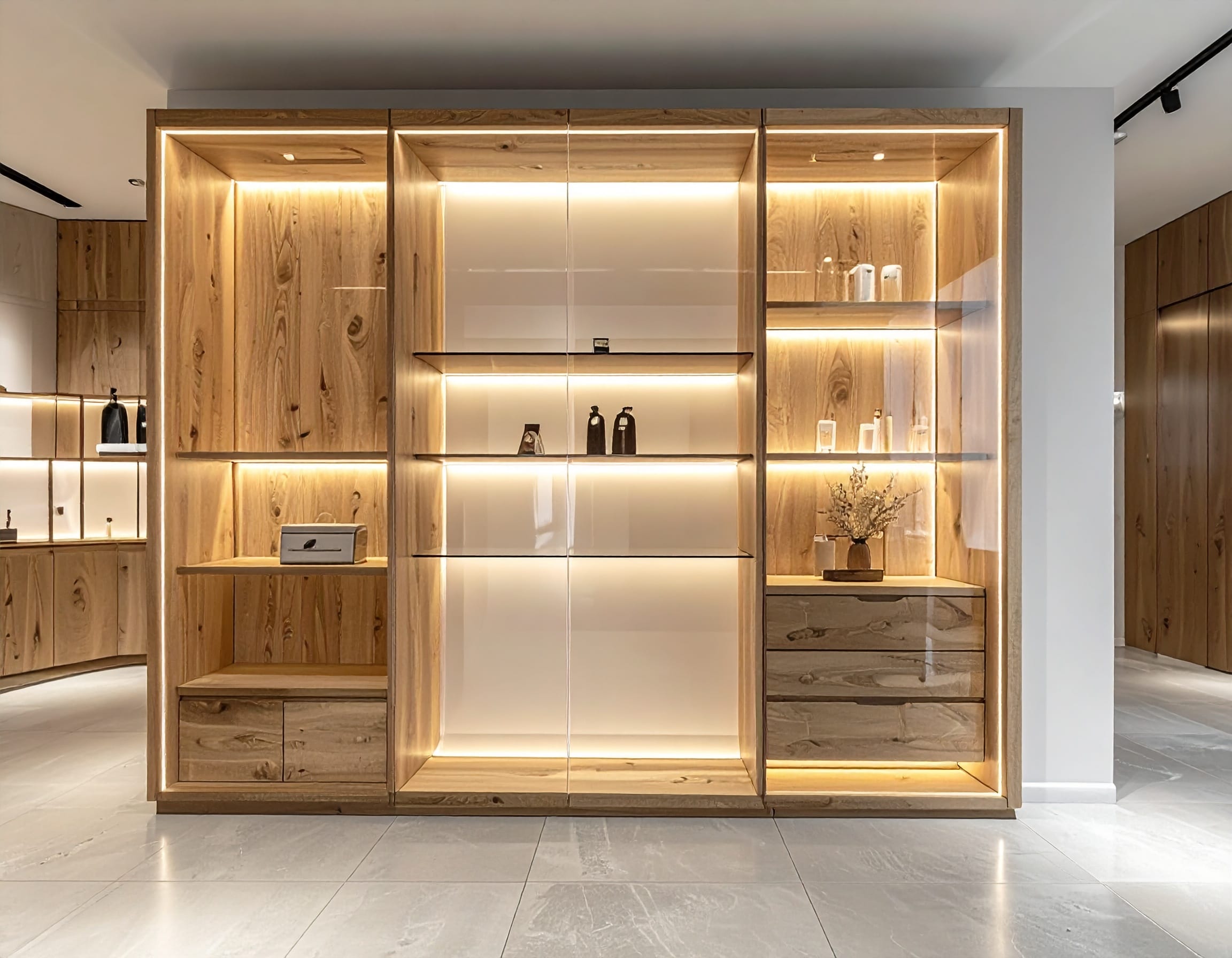 Tủ Trưng Bày Gỗ Hiện Đại Cho Cửa Hàng – Giải Pháp Trưng Bày Sang...