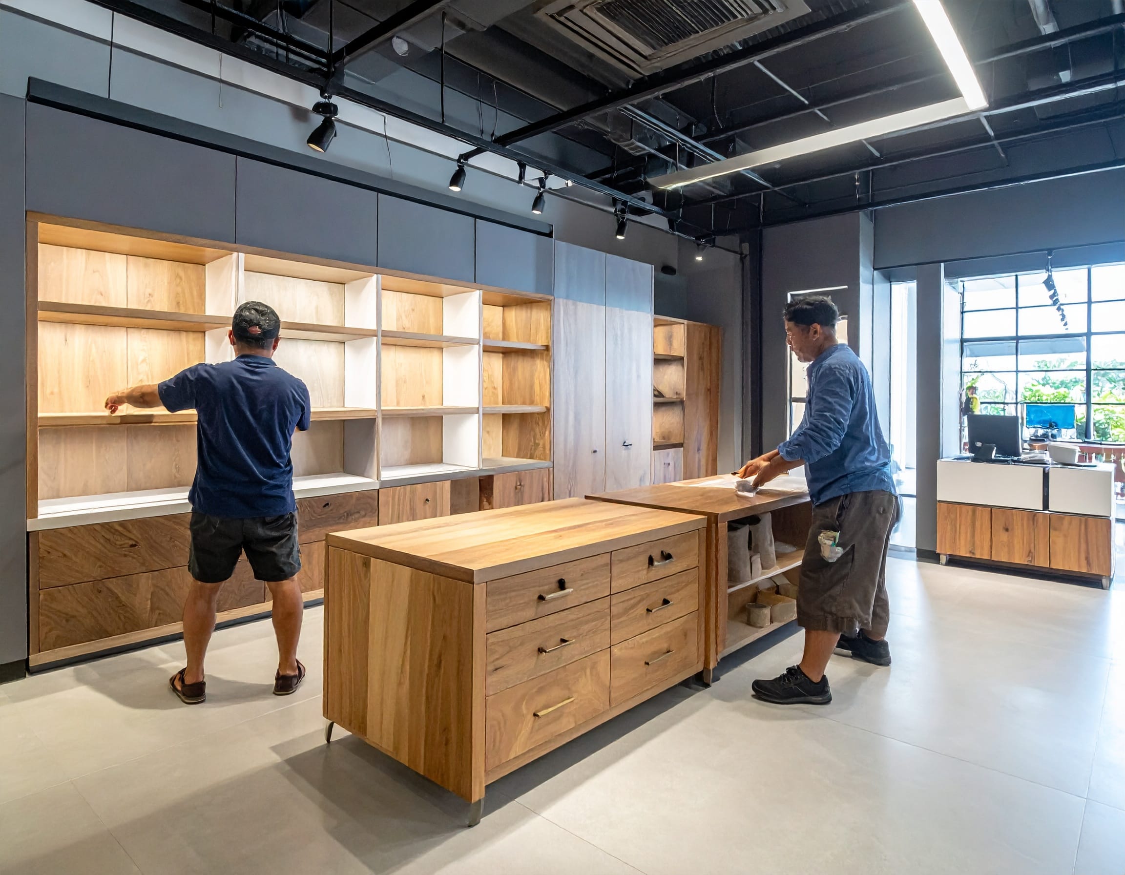 4. Quy trình thi công tủ trưng bày tại xưởng Bluecons