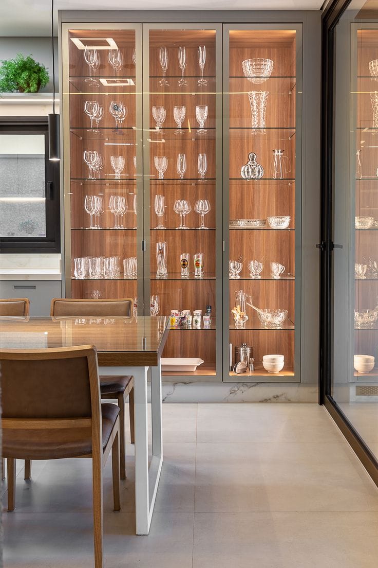 Một trong những xu hướng nổi bật hiện nay là tủ kính tối giản. Thiết kế này tập trung vào sự gọn gàng, đường nét đơn giản và màu sắc trung tính. Nhờ đó, sản phẩm trưng bày trở thành điểm nhấn chính trong không gian.