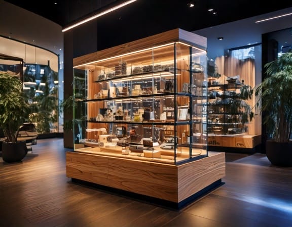 Tủ kính trưng bày còn đóng vai trò như một phần của thiết kế nội thất cửa hàng. Một không gian bán hàng chuyên nghiệp với tủ trưng bày đồng bộ sẽ giúp thương hiệu tạo được ấn tượng mạnh mẽ, từ đó tăng độ uy tín và khả năng cạnh tranh trên thị trường.