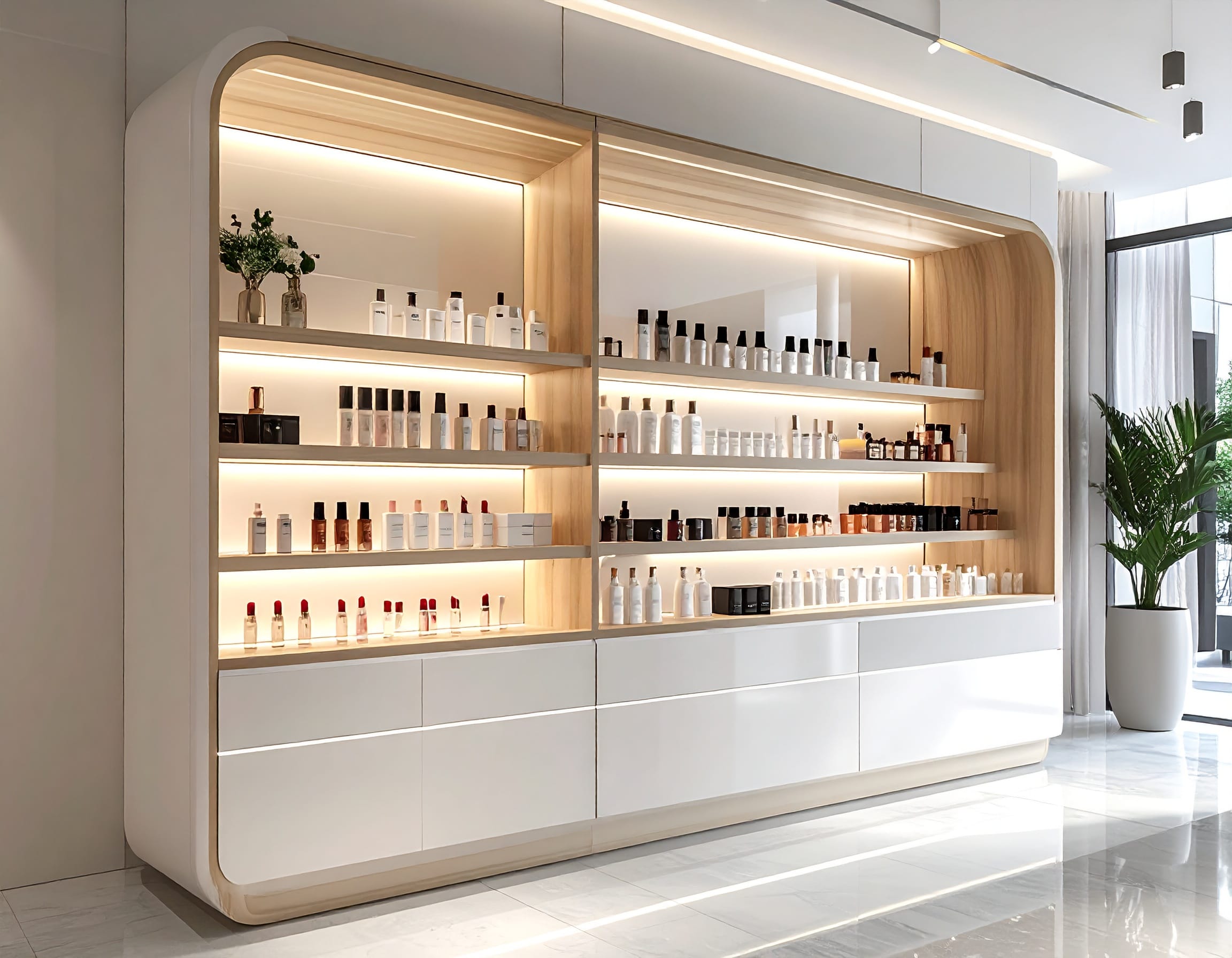 Tủ Trưng Bày Shop Mỹ Phẩm Đẹp – Giải Pháp Nội Thất Thu Hút Khách Hàng