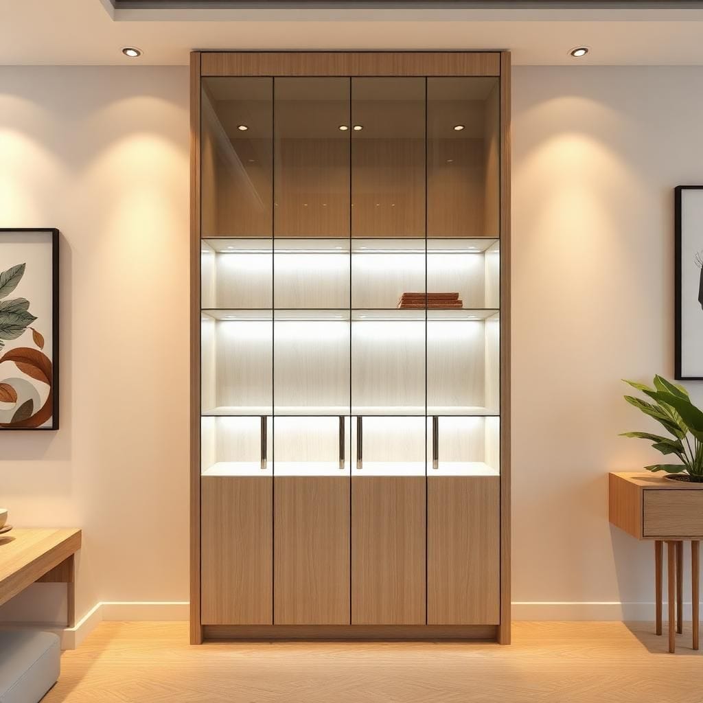 8.4. Tủ kết hợp vật liệu (gỗ + kính + inox)