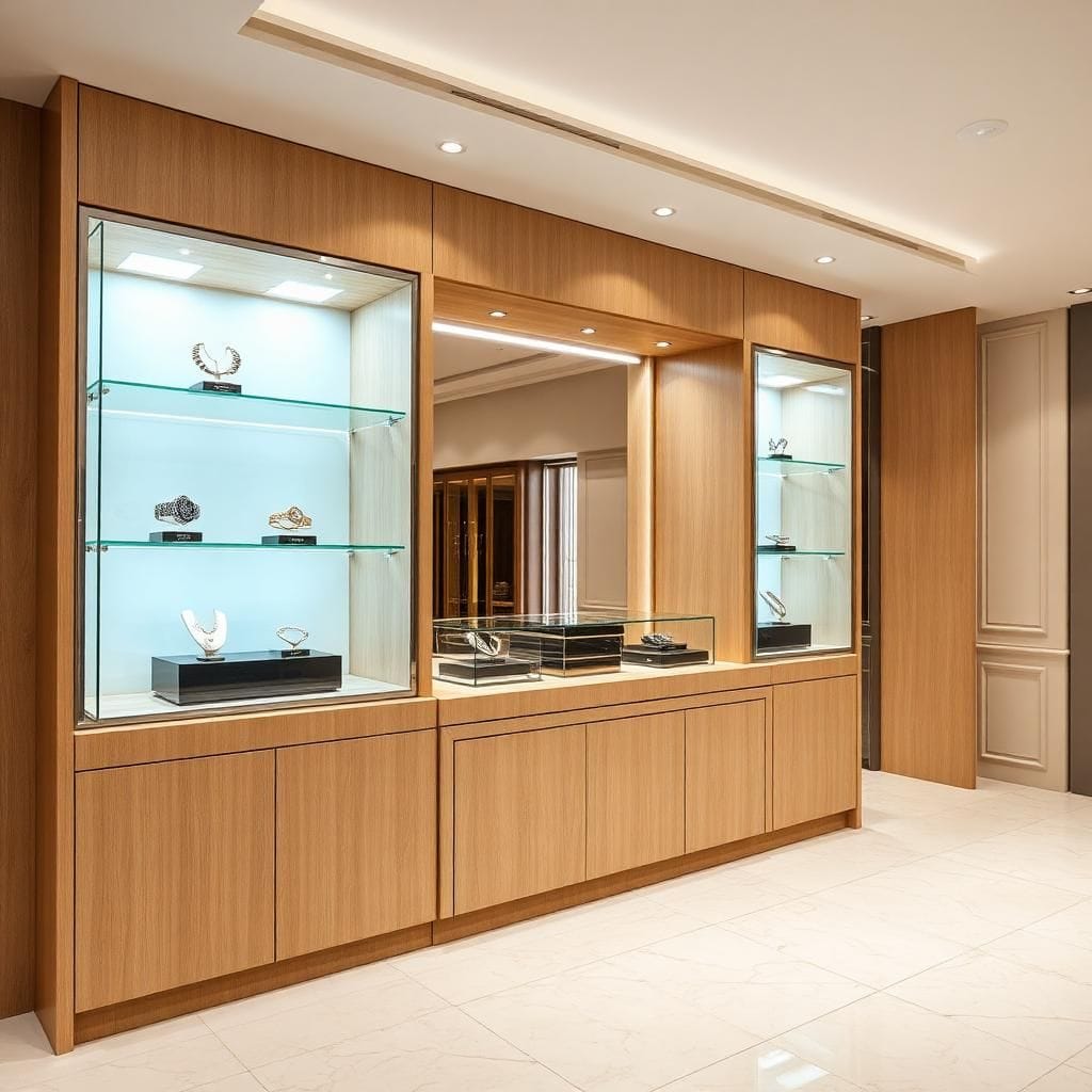 | Kính cường lực | Trong suốt, an toàn | 6–12mm, viền nhôm/inox, LED, khóa | Trang sức, mỹ phẩm, điện thoại |