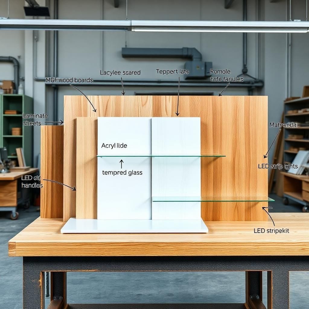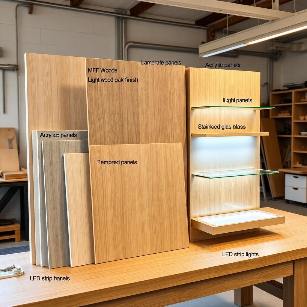 Vật liệu đa dạng: Kính cường lực, gỗ MDF/MFC/HDF/Plywood, inox, sắt sơn tĩnh điện.