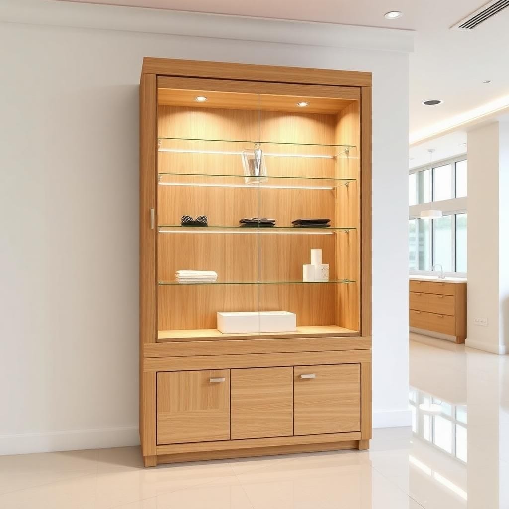 2. Tủ trưng bày gỗ – Giải pháp sang trọng và bền đẹp